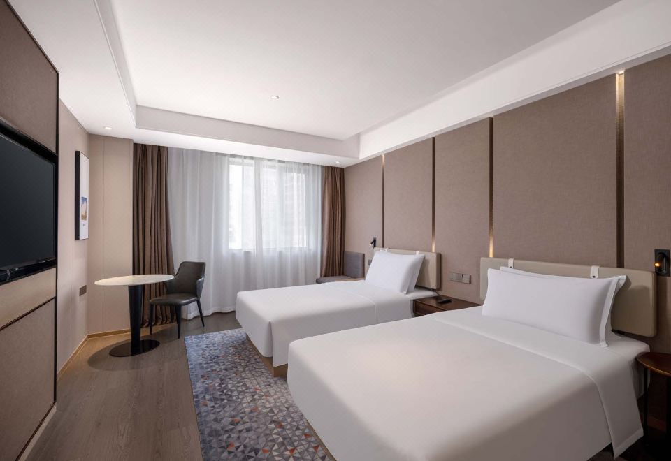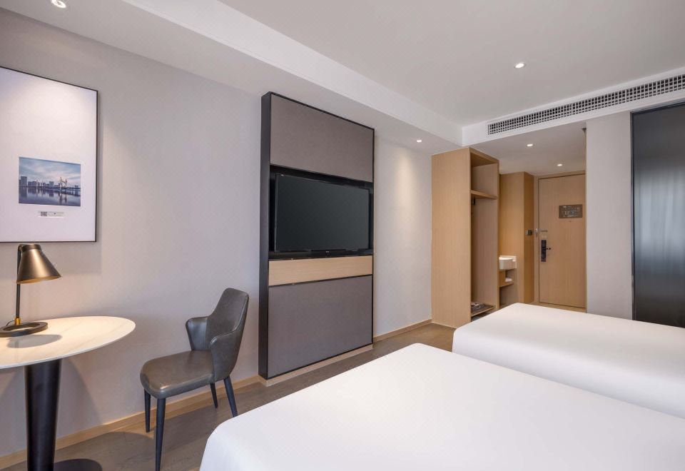 高级双床房(65寸电视+可手机投屏+冰箱+办公桌椅)